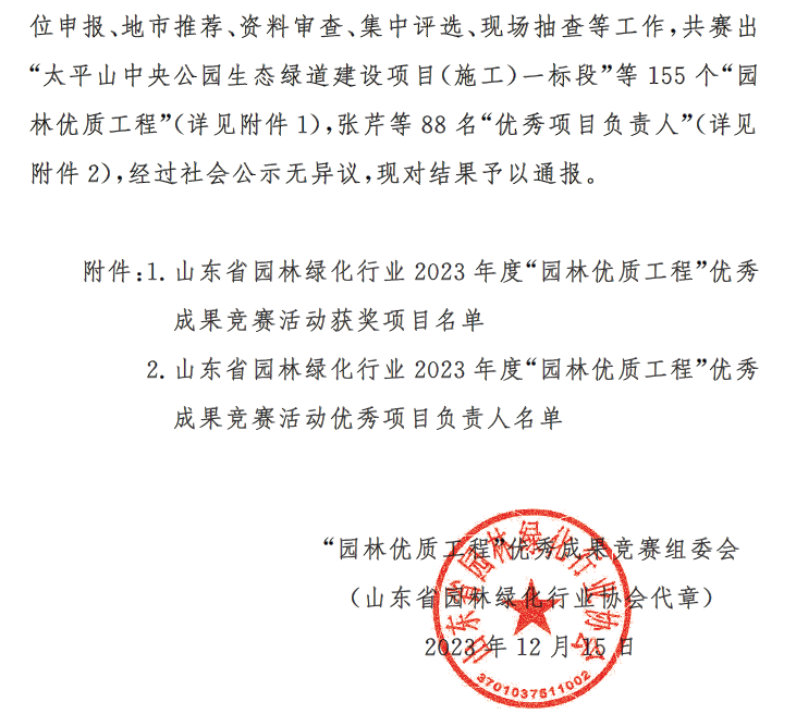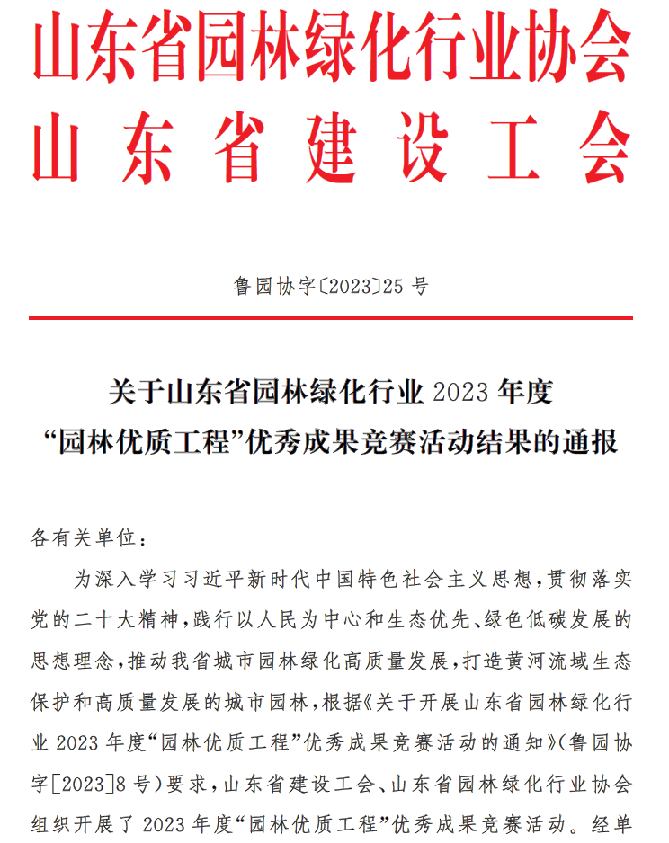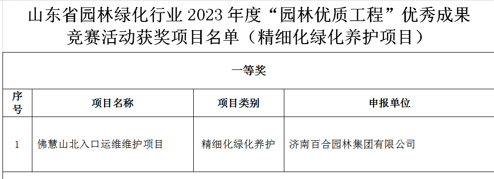 百合園林集團(tuán)參賽“園林優(yōu)質(zhì)工程”優(yōu)秀成果競(jìng)賽活動(dòng)百合園林集團(tuán)喜獲精細(xì)化綠化養(yǎng)護(hù)項(xiàng)目一等獎(jiǎng)