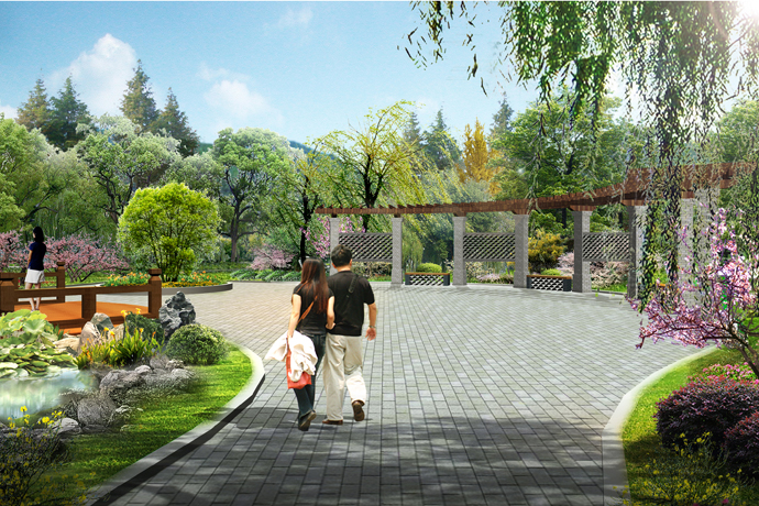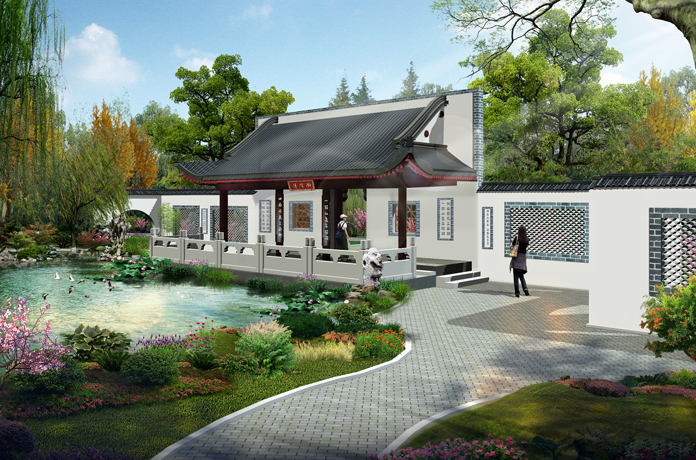 濟南園占地面積約2500㎡,以“生態(tài)泉溪,悠然濟南”為主題。全園運用自然式布局手法,圍繞匯波湖,分為中部“蓮湖勝景”、西部“柳荷碧漪”、東部“臨波尋趣”三區(qū),各區(qū)之間互為借景與對景。