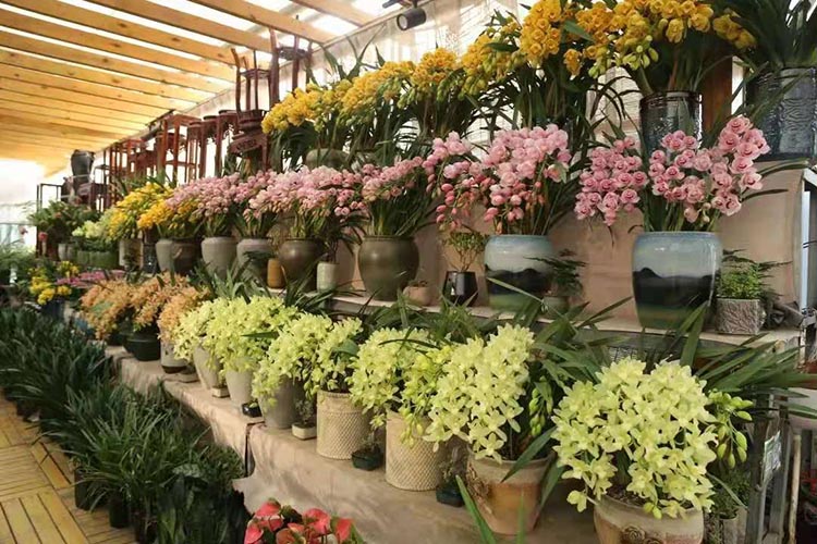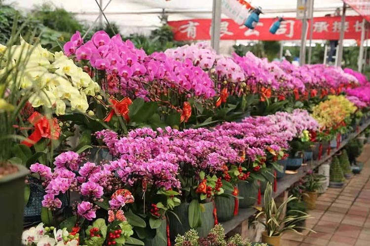 春節(jié)臨近,濟(jì)南百合花卉展銷市場百花齊放,喜迎新春,近百萬盆蝴蝶蘭、紅掌、大花惠蘭、杜鵑、君子蘭、寶蓮燈等上百種花卉爭奇斗艷,裝點(diǎn)千家萬戶,為即將到來的牛年增添喜慶氣氛。