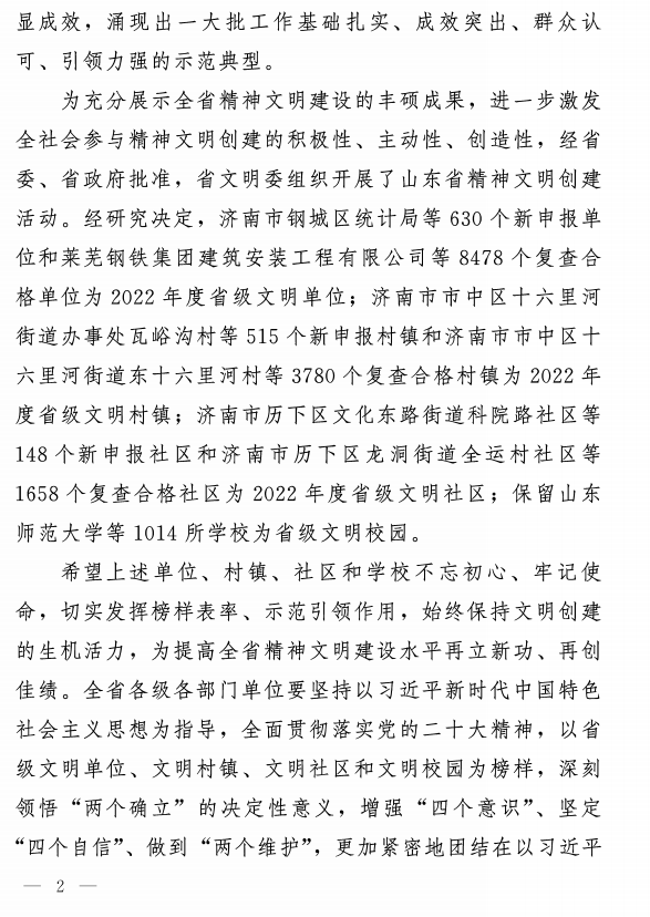 近日,山東省精神文明建設(shè)委員會(huì)下發(fā)了《關(guān)于公布2022年度省級(jí)文明單位、文明村鎮(zhèn)、文明社區(qū)和往屆復(fù)查合格省級(jí)文明校園創(chuàng)建名單的通報(bào)》,百合園林集團(tuán)喜獲“省級(jí)文明單位”榮譽(yù)稱(chēng)號(hào)。